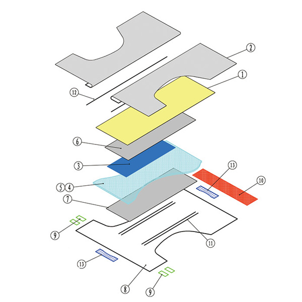 基本生產(chǎn)工藝配置: 高速粉粹機(可使用未處理漿) 棉成型機構(gòu)I 棉成型機構(gòu)I 高分子下料機構(gòu)I 高分子下料機構(gòu)II 材料供給機構(gòu) 弧切組合刀具 縱向折疊機構(gòu) 終切組合刀具 橫向折疊機構(gòu) 供氣機構(gòu) 安全防護機構(gòu) |